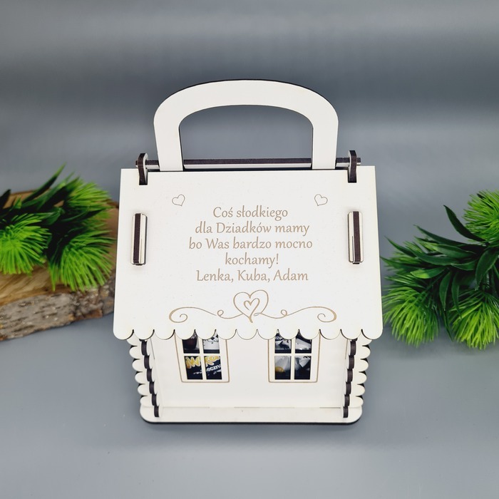 W naszej pracowni przygotowaliśmy specjalne domki, które stanowią idealny prezent na Dzień Babci i Dziadka. Każdy domek można wypełnić słodyczami, tworząc w ten sposób prezent gotowy do wręczenia. Na przedniej stronie domku znajduje się uroczy obrazek Babci i Dziadka. Z tyłu domku umieszczony jest piękny wierszyk: