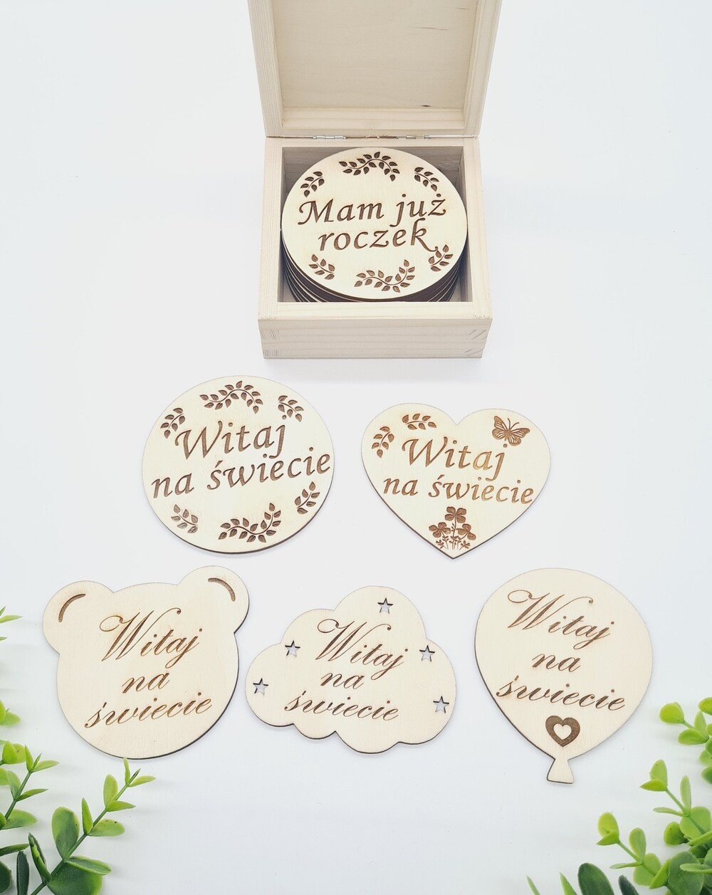 Nie zapomnij zapisać swojej personalizacji, aby móc dodać ją do koszykaDrewniane tabliczki do zdjęć z miesiącami to idealny sposób na dokumentowanie każdego etapu życia Twojego dziecka. Wykonane z sklejki brzozowej, dostępne w różnych kształtach, dodają uroku każdej fotografii.