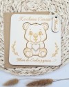 - Uroczy design: drewniana kartka z grafiką misia wygląda uroczo i ciepło, co podkreśla wyjątkowość prośby.