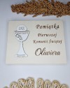 Pamiątka Komunijna w formie pudełka. Pamiątka o wymiarach 21x17,5cm dlatego można w nim umieścić merci.