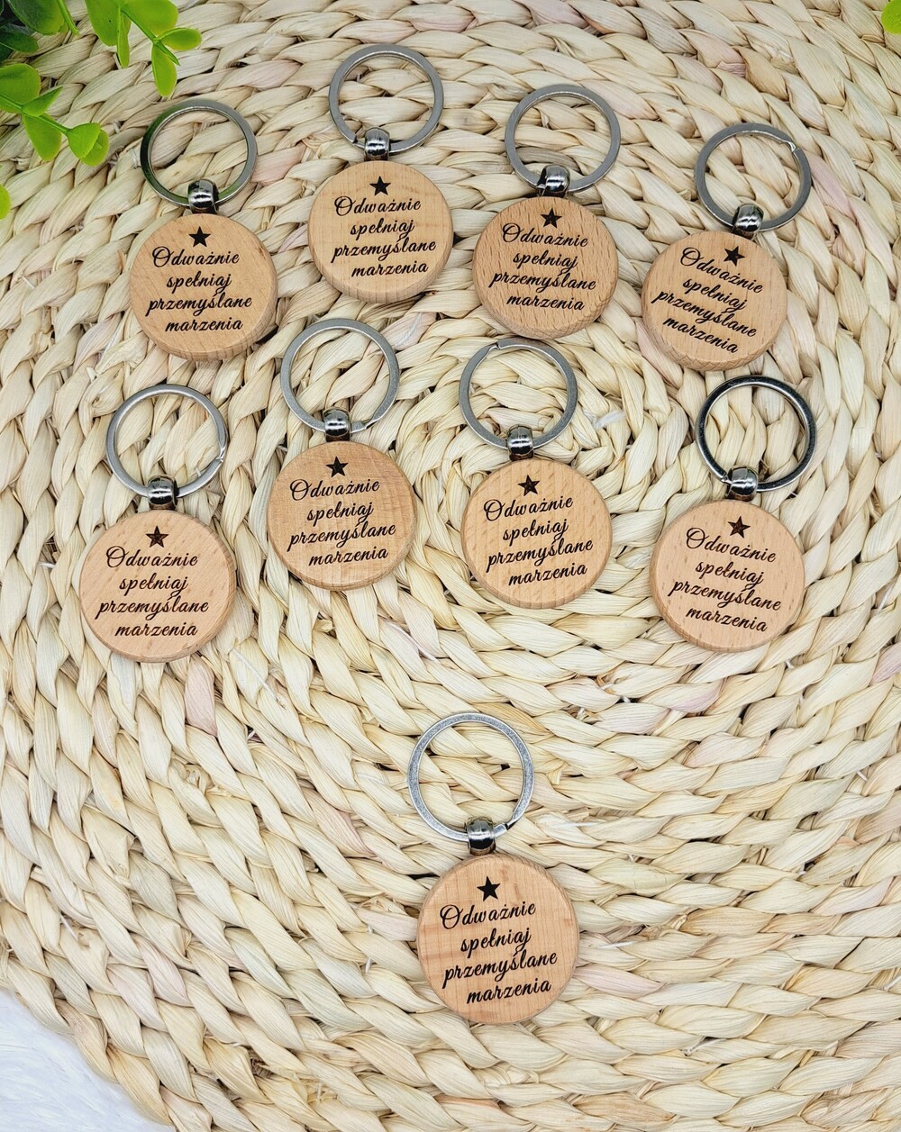 Ten drewniany brelok to idealny drobny upominek, który nie tylko będzie praktycznym dodatkiem, ale także przypomnieniem o ważnych życiowych wartościach i inspiracją do działania dla młodych osób, które kończą pewien etap w swoim życiu.