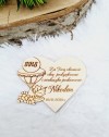 Nie zapomnij zapisać swojej personalizacji, aby móc dodać ją do koszykaSerduszko wykonane z naturalnej drewnianej sklejki to uroczy i znaczący upominek, idealny na podziękowanie dla gości z okazji Pierwszej Komunii Świętej. Serduszko ma około 7,5 cm szerokości, około 6cm wysokości, co czyni je idealnym rozmiarem do wręczenia jako mały, ale pełen znaczenia gest wdzięczności.