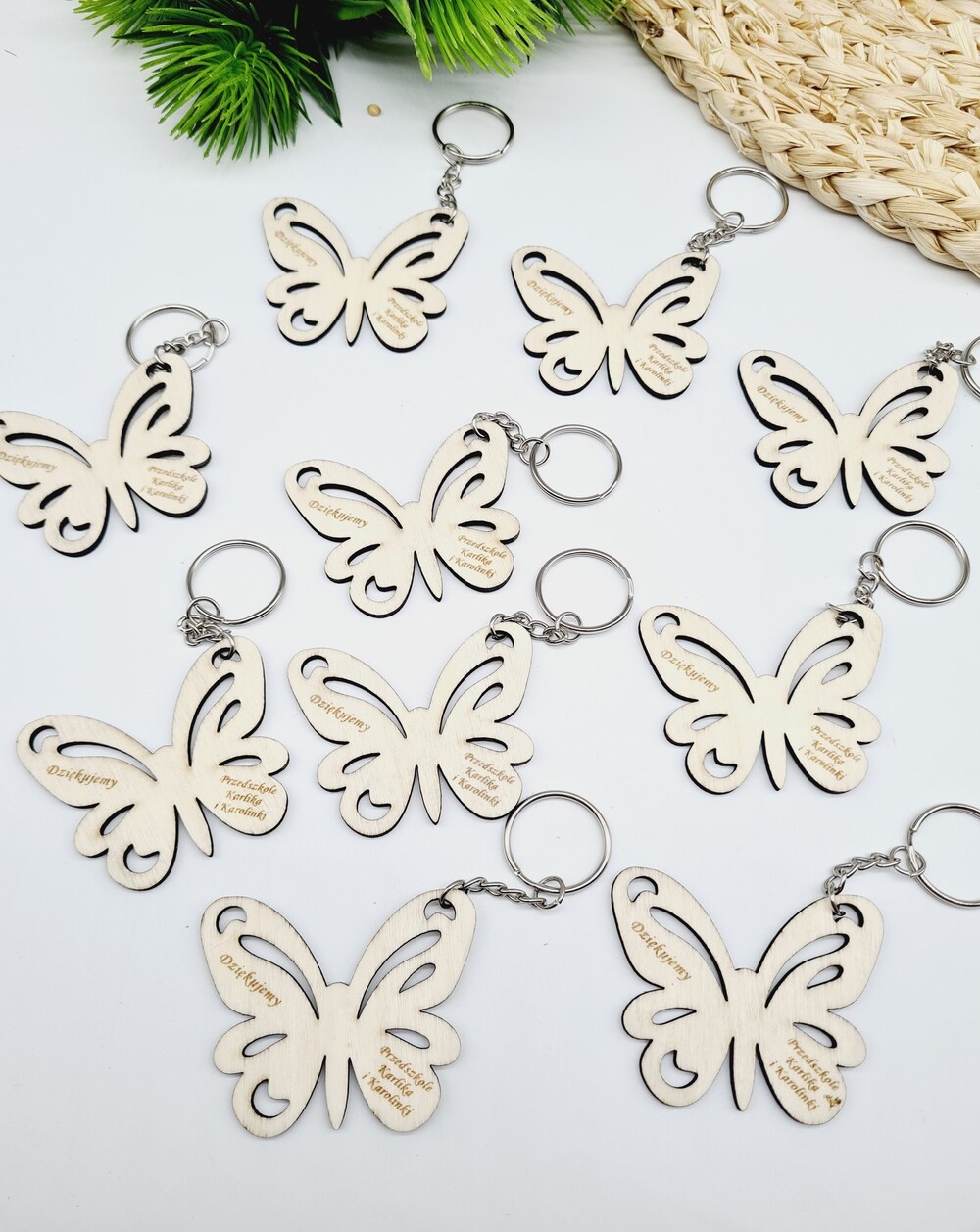 Nie zapomnij zapisać swojej personalizacji, aby móc dodać ją do koszykaBrelok w kształcie ażurowego motylka to elegancki i subtelny upominek, idealny na różne okazje. Wykonany z precyzyjnie wyciętego materiału, brelok ma wymiary 5 cm x 6 cm, co czyni go delikatnym, ale wyrazistym dodatkiem do kluczy, torebki czy plecaka.