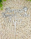Nie zapomnij zapisać swojej personalizacji, aby móc dodać ją do koszykaTopper na tort wykonany z naturalnej drewnianej sklejki to elegancka i stylowa ozdoba idealna na Pierwszą Komunię Świętą. Ma wymiary około 15 cm szerokości i 19 cm wysokości, co sprawia, że doskonale wyróżnia się na torcie, nie przytłaczając go.