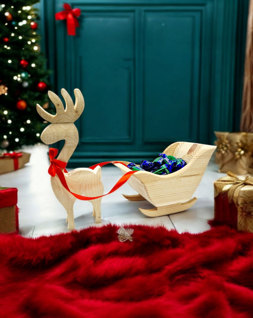 Drewniany renifer z saniami to nie tylko piękna dekoracja, ale również kreatywny sposób na wręczenie świątecznych upominków.