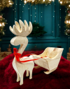 Przedmiotem sprzedaży jest renifer z saniami bez zawartości prezentowanej na zdjęciu.
