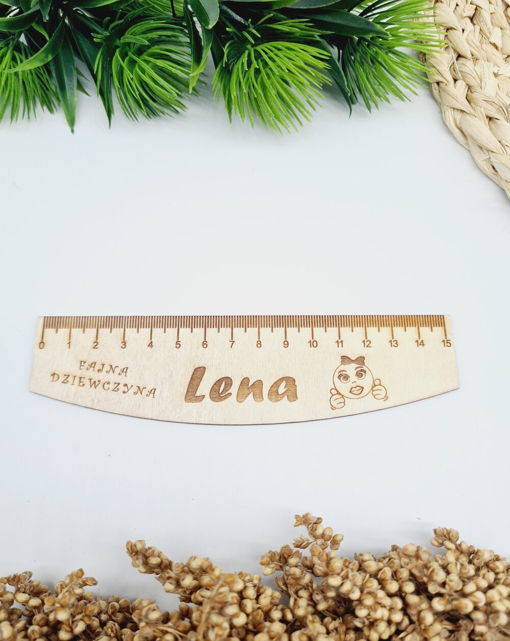 Nie zapomnij zapisać swojej personalizacji, aby móc dodać ją do koszykaDrewniana linijka o długości 15 cm, wykonana z drewnianej sklejki, to wyjątkowy i osobisty upominek, który idealnie nadaje się na Dzień Kobiet, zwłaszcza dla grup szkolnych. Linijka jest wykonana z naturalnej drewnianej sklejki, co zapewnia jej trwałość i estetyczny, naturalny wygląd. Drewno dodaje jej elegancji i sprawia, że jest przyjemna w dotyku. Na linijce znajduje się napis „Fajna Dziewczyna” oraz imię obdarowanej osoby, co sprawia, że jest to bardzo osobisty prezent. Dodatkowo, na linijce umieszczona jest grafika przedstawiająca buźkę z uniesionym palcem w górę, co dodaje jej uroku i podkreśla pozytywny, radosny charakter upominku. O długości 15 cm, linijka jest kompaktowa i praktyczna, idealna do codziennego użytku, a zarazem wystarczająco duża, by wygrawerowane napisy i grafika były dobrze widoczne. Linijka jest doskonałym pomysłem na prezent na Dzień Kobiet, szczególnie w grupach szkolnych. Dzięki personalizacji stanie się miłym akcentem i użytecznym przedmiotem codziennego użytku.
