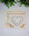 Nie zapomnij zapisać swojej personalizacji, aby móc dodać ją do koszykaDrewniana kartka na Pierwszą Komunię Świętą, wykonana z naturalnej drewnianej sklejki, to wyjątkowa i elegancka pamiątka tego ważnego sakramentu. Front kartki zdobi białe ażurowe serce, które dodaje subtelności i lekkości. W centrum serca wygrawerowany jest napis „IHS”, symbolizujący obecność Chrystusa w Eucharystii.