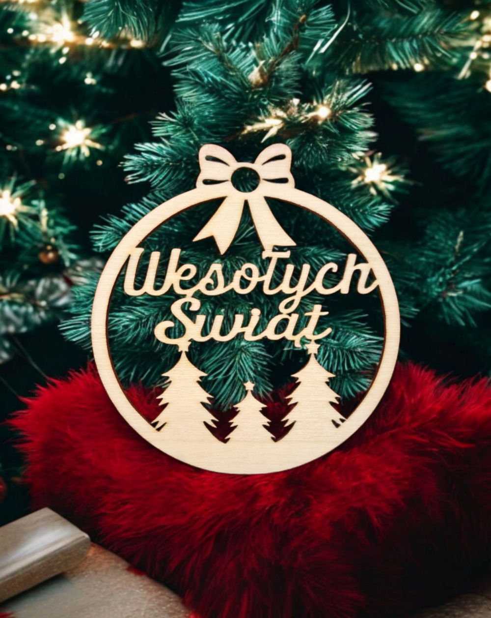 Drewniana bombka z napisem wesołych świąt to piękna ozdoba, która przyozdobi niejedną świąteczną choinkę. To również świetny pomysł na drobny świąteczny upominek.