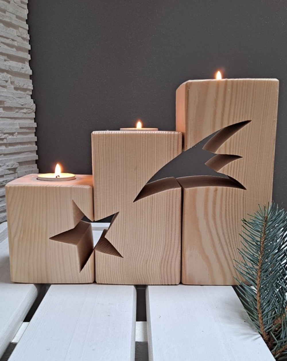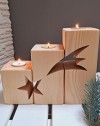 Drewniane świeczniki tworzące się z trzech elementów o wymiarach 20 cm, 15 cm i 10 cm do dekoracji ( przekrój każdego elementu 9cm x 9 cm ), która wprowadza w świąteczny klimat. Każdy z elementów został wykonany z najwyższą starannością, a dokładność wycięta w gwiazdę betlejemską dodaje mu elegancji i uroku. Naturalny zapach drewna oraz jego ciepły, naturalny kolor doskonale wpasowują się w każde wnętrze, tworząc przytulną i świąteczną atmosferę. Drewniany świecznik to nie tylko piękna dekoracja, może on również okazać się wspaniałym prezentem, który sprawdził się jako elegancki gest, gdy wybieramy się w gości podczas świąt.