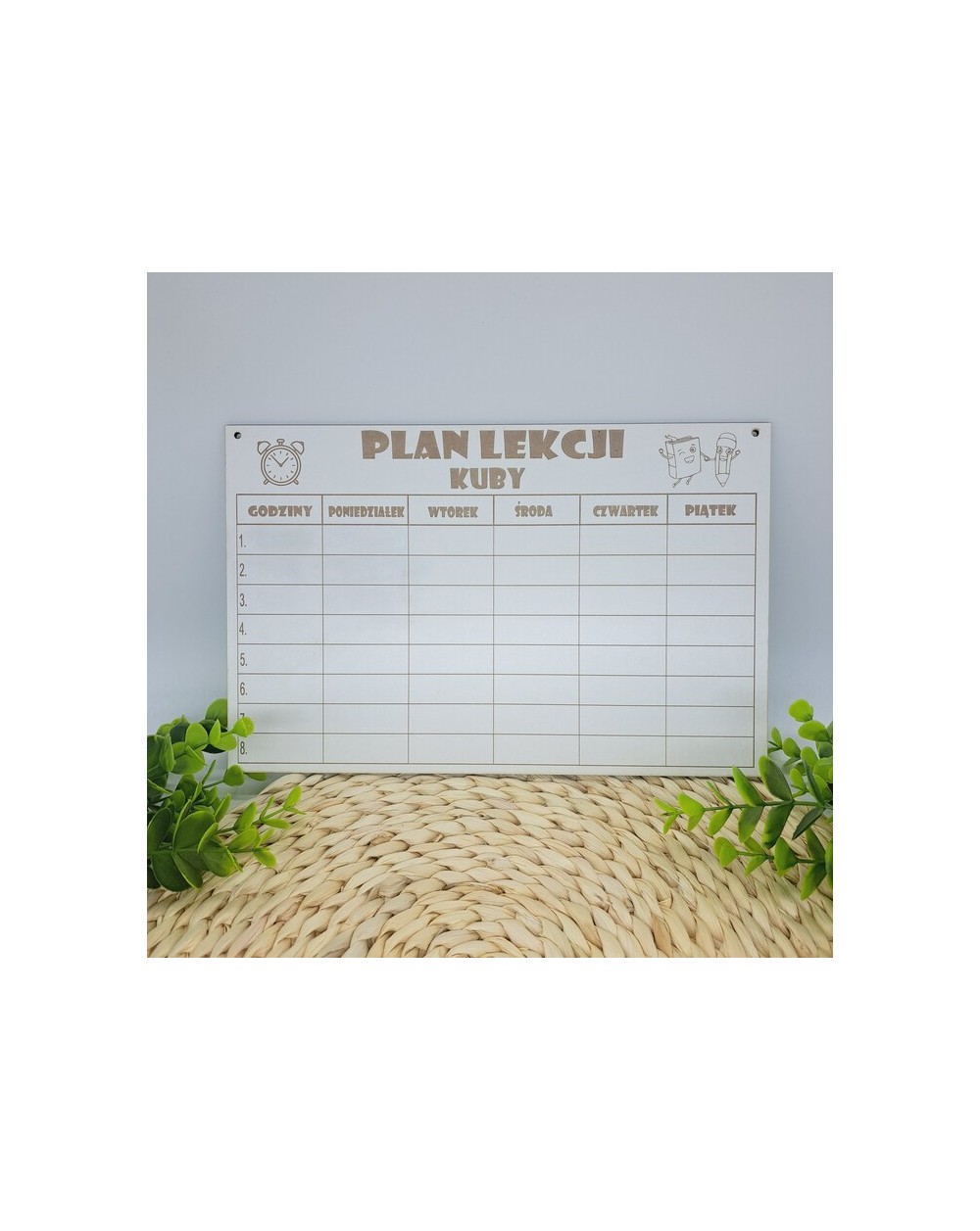 Plan lekcji wykonany z białej płyty HDF to wyjątkowa praktyczna ozdoba dziecięcego pokoju.
