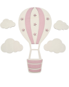 Chmurki, podobnie jak balon, wykonane są z naturalnej sklejki, co nadaje całości spójnego i estetycznego wyglądu. Balon ozdobiony jest paskami, które można dostosować według własnych preferencji — dostępne są różne kolory do wyboru, co pozwala dopasować dekorację do stylu wnętrza.