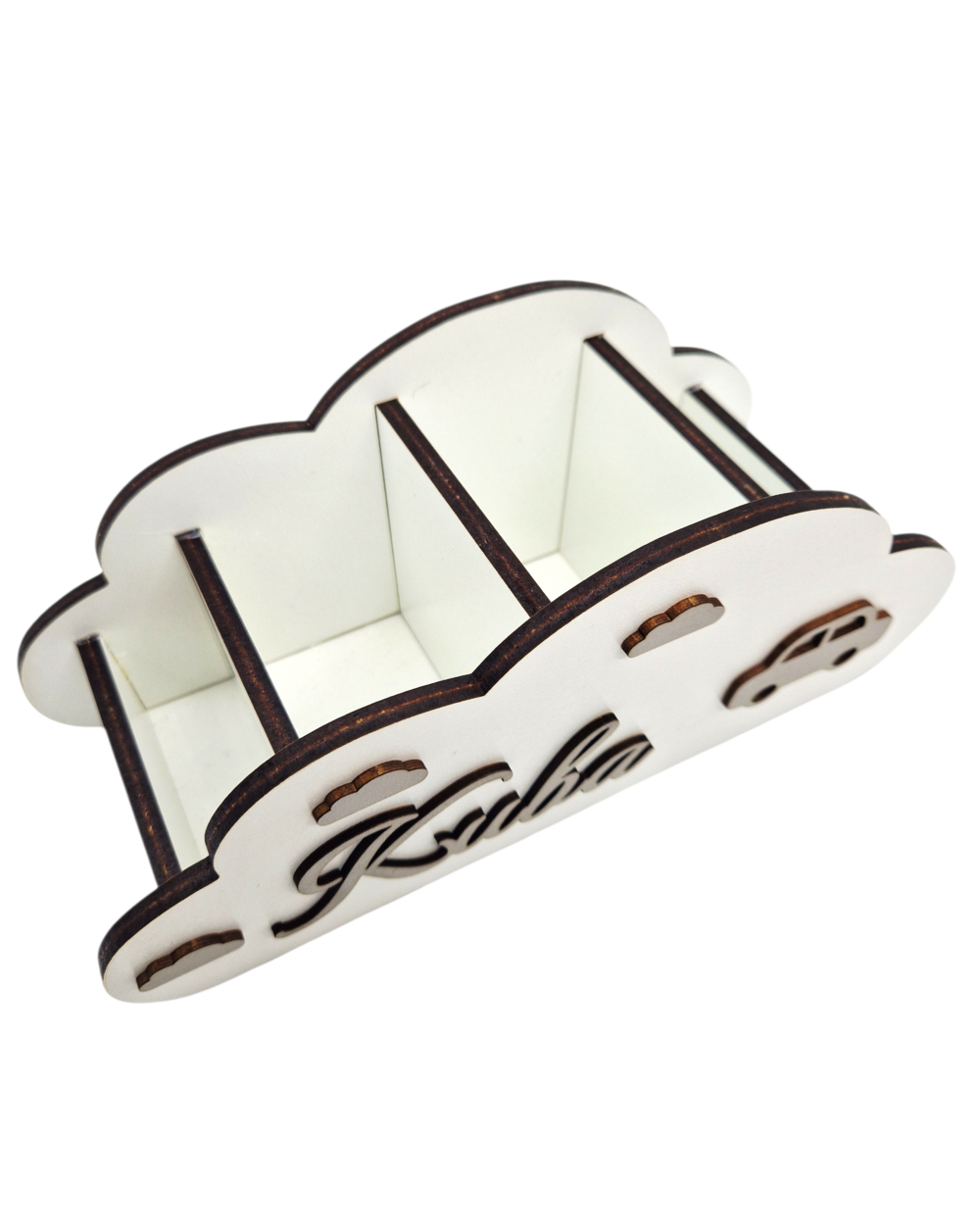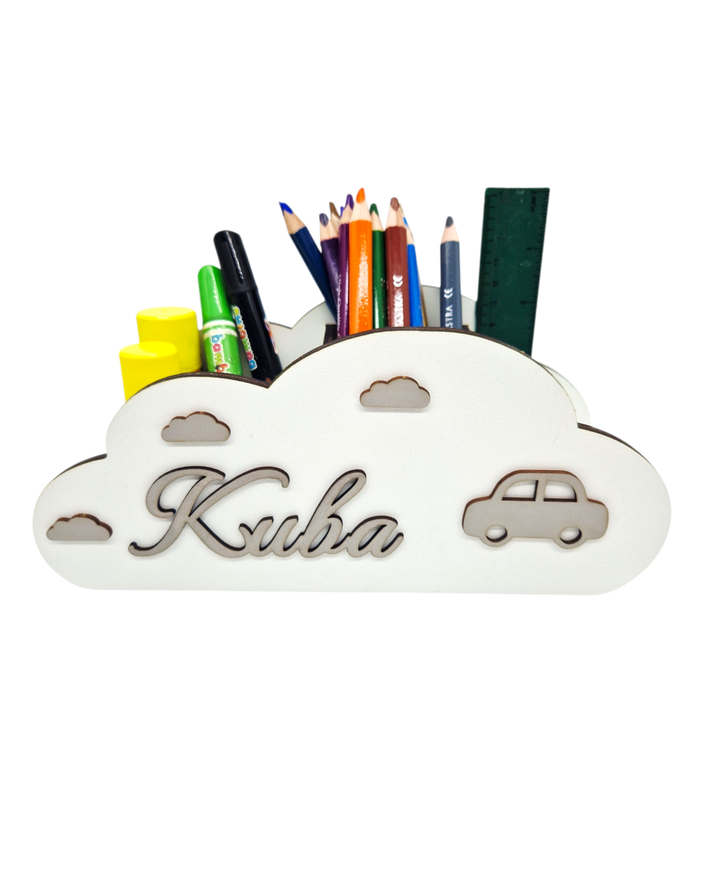 Nie zapomnij zapisać swojej personalizacji, aby móc dodać ją do koszykaOrganizer na przybory szkolne w kształcie chmurki to idealne rozwiązanie dla małych miłośników motoryzacji. Wykonany z wysokiej jakości płyty HDF, cechuje się trwałością i estetyką, dzięki precyzyjnemu wycięciu. Jego wymiary to 23,5 cm szerokości, 11,5 cm wysokości oraz 9,5 cm głębokości, co sprawia, że jest kompaktowy, a jednocześnie funkcjonalny, z miejscem na różnorodne przybory szkolne.