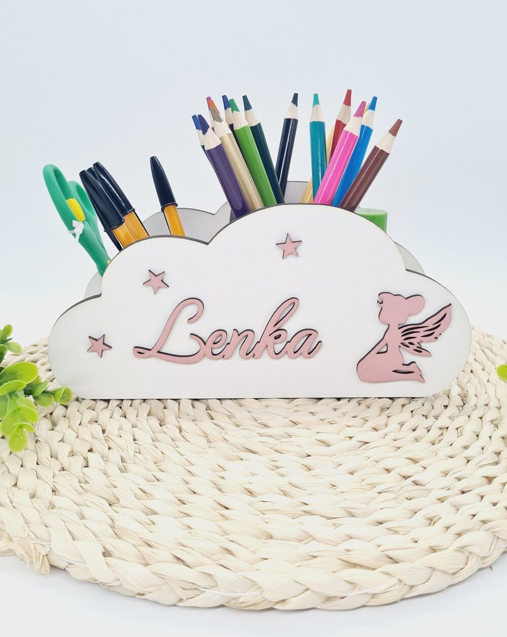 Nie zapomnij zapisać swojej personalizacji, aby móc dodać ją do koszykaOrganizer na przybory szkolne w kształcie chmurki to wyjątkowy i uroczy element, który z pewnością przypadnie do gustu każdemu dziecku. Wykonany z trwałej płyty HDF, organizer jest precyzyjnie wycięty, co zapewnia estetyczny wygląd i solidną konstrukcję. Jego wymiary to 23,5 cm szerokości, 11,5 cm wysokości oraz 9,5 cm głębokości, dzięki czemu idealnie pasuje na każde biurko, nie zajmując zbyt wiele miejsca, ale oferując jednocześnie dużo przestrzeni na przybory.