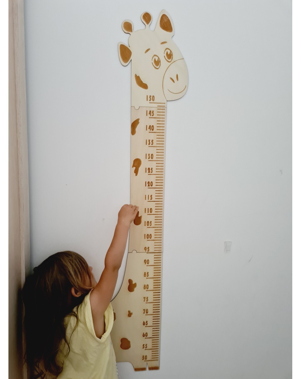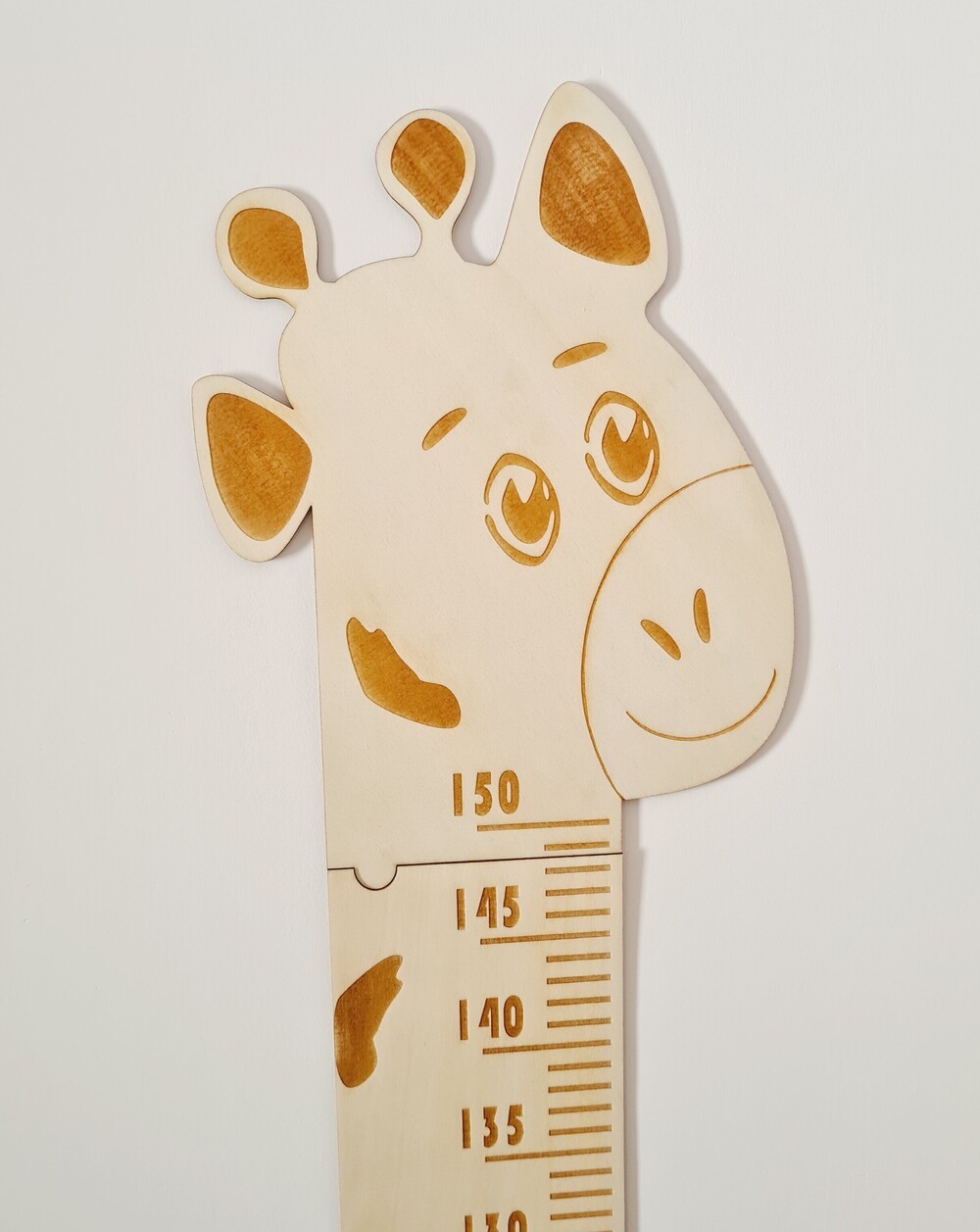Miarka wzrostu w kształcie żyrafy to uroczy dodatek do każdego dziecięcego pokoju. Wykonana z wysokiej jakości sklejki, ma wymiary 135 cm wysokości i 40 cm szerokości, co sprawia, że jest dobrze widoczna i łatwa do odczytania. Żyrafa ma sympatyczny, przyjazny design, który zachęca dzieci do korzystania z niej podczas pomiaru wzrostu.