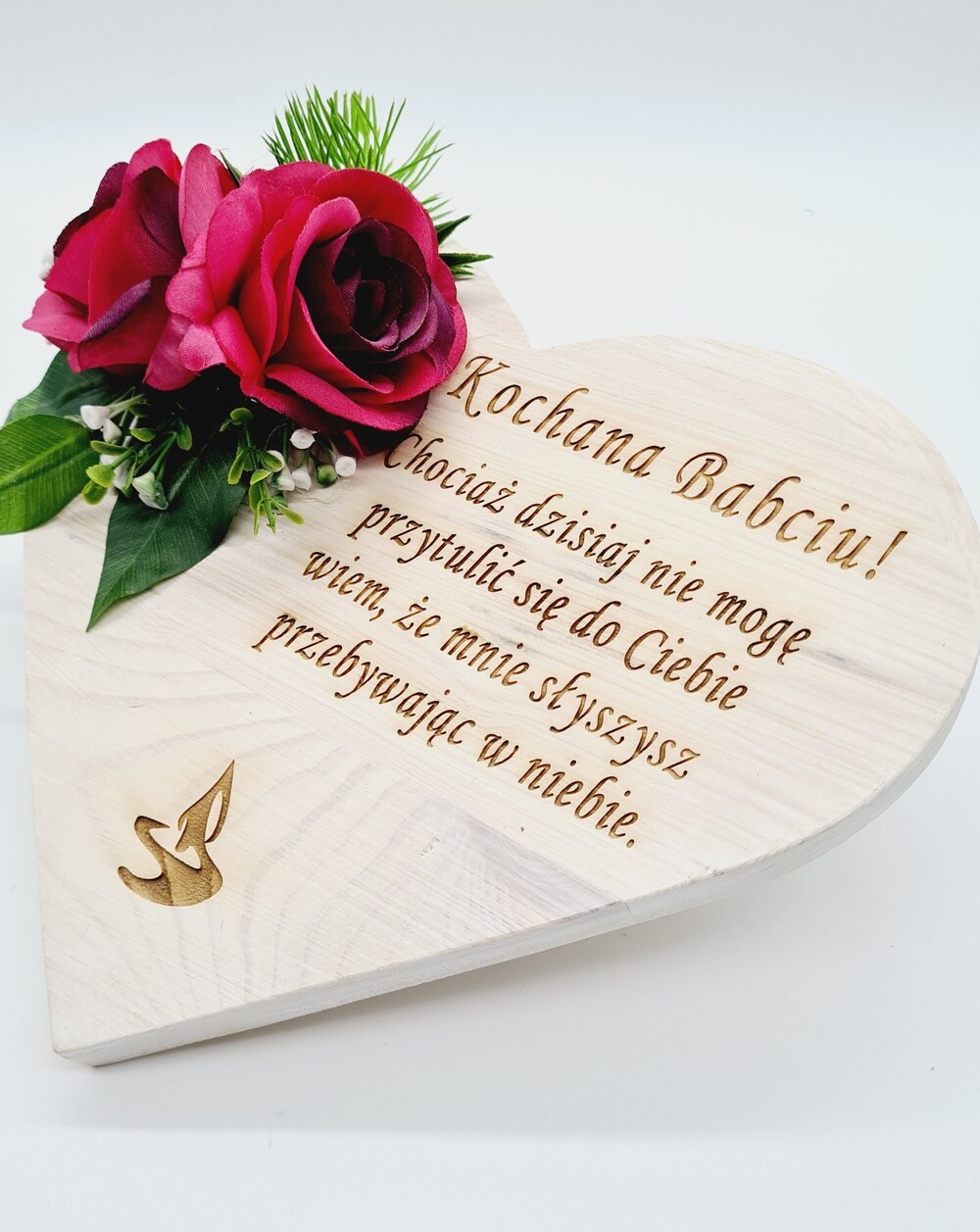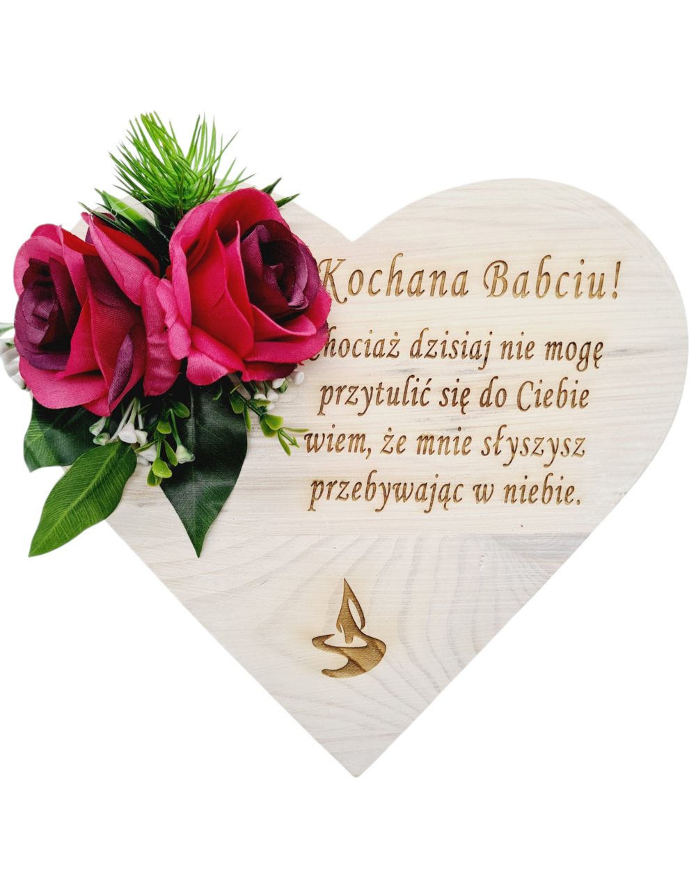 Nie zapomnij zapisać swojej personalizacji, aby móc dodać ją do koszykaStroik na cmentarz w formie drewnianego serca to elegancki i pełen emocji sposób upamiętnienia ukochanej osoby, takiej jak babcia, dziadek, mama, tata czy ciocia itp. Serce wykonane jest z drewna, pomalowane na biało, co nadaje mu delikatny i spokojny wygląd, symbolizujący czystość i wieczną pamięć. Na górze serca znajduje się dedykacja dla bliskiej osoby, a poniżej wygrawerowany wierszyk: