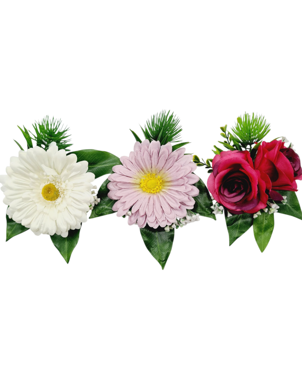 Po lewej stronie serca umieszczony jest kwiatek, który można dostosować według własnych preferencji: biały gerber symbolizujący pokój i niewinność, różowy gerber wyrażający miłość i wdzięczność, lub czerwona róża – symbol głębokiej miłości i pamięci. Dodatkowo kompozycję uzupełniają zielone elementy, które nadają całości naturalny i harmonijny wygląd. Stroik ten stanowi elegancki, pełen wdzięczności i szacunku gest pamięci o bliskiej osobie, która odeszła, oferując spokojną i piękną formę hołdu.