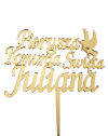Nie zapomnij zapisać swojej personalizacji, aby móc dodać ją do koszykaElegancki topper na tort z okazji Pierwszej Komunii Świętej wykonany z wysokiej jakości złotej plexi to wyjątkowa ozdoba, która nadaje tortowi komunijnemu niepowtarzalnego uroku. Subtelny połysk złotej plexi podkreśla uroczysty charakter przyjęcia i sprawia, że dekoracja prezentuje się elegancko i stylowo.