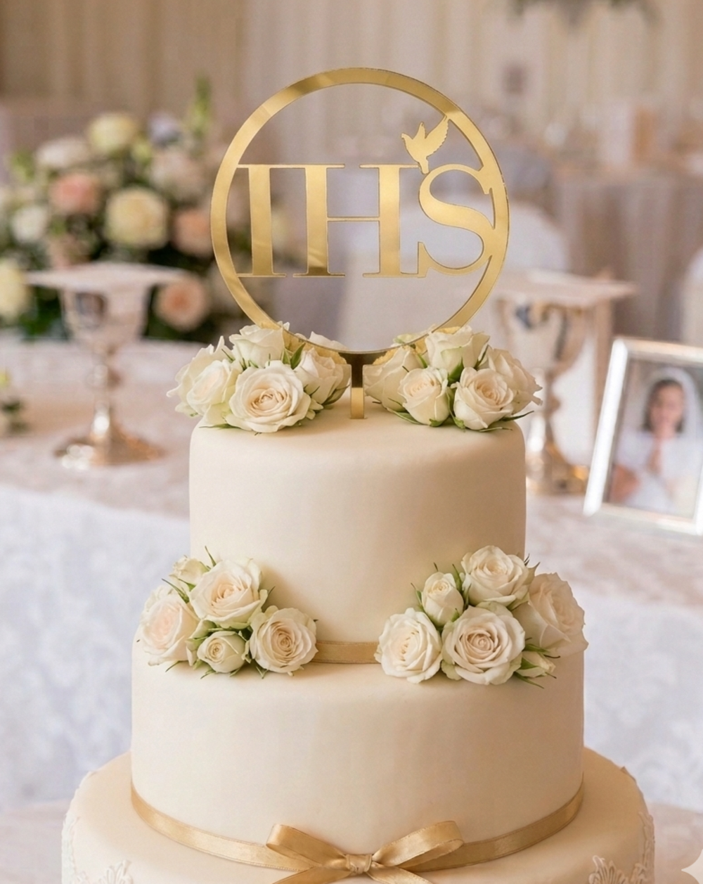 Podkreśl wyjątkowość Pierwszej Komunii Świętej dzięki dekoracji, która idealnie wpisze się w motyw przewodni Twojego przyjęcia. Nasz topper z symbolem IHS i gołąbkiem to subtelny, a zarazem efektowny akcent, który nada każdemu tortowi odświętnego charakteru.