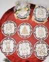 Podkładki są pakowane w elegancki, naturalny stojak z drewna, który pozwala na ich łatwe przechowywanie oraz stanowi dodatkowy element dekoracyjny. Zestawy dostępne są w opakowaniach po 6 lub 12 sztuk – w przypadku większego zestawu znajduje się po 2 sztuki z każdego wzoru, co pozwala cieszyć się różnorodnością wzorów i dzielić nimi z gośćmi podczas świątecznych spotkań.