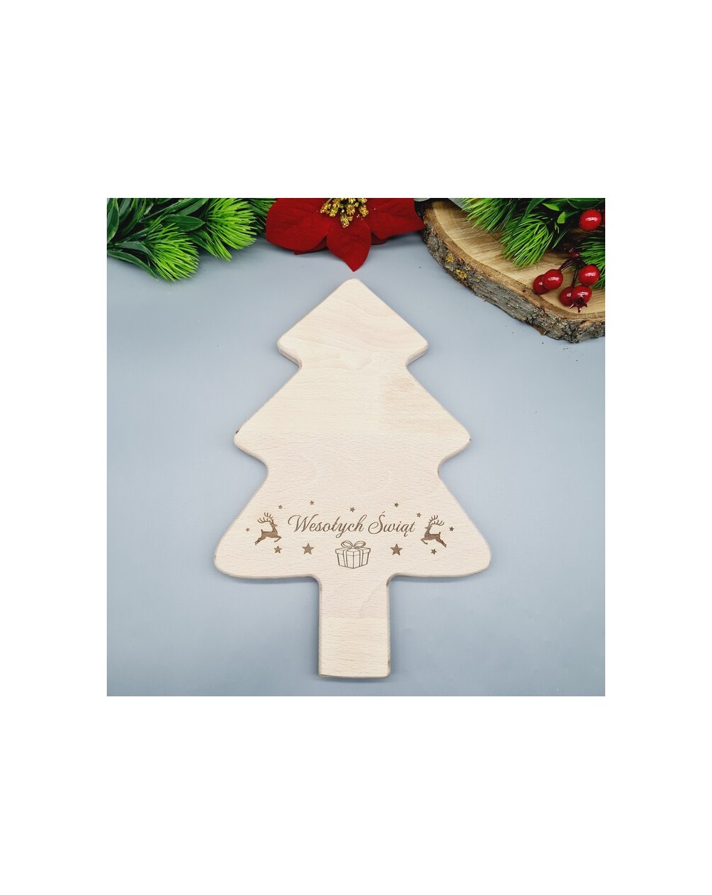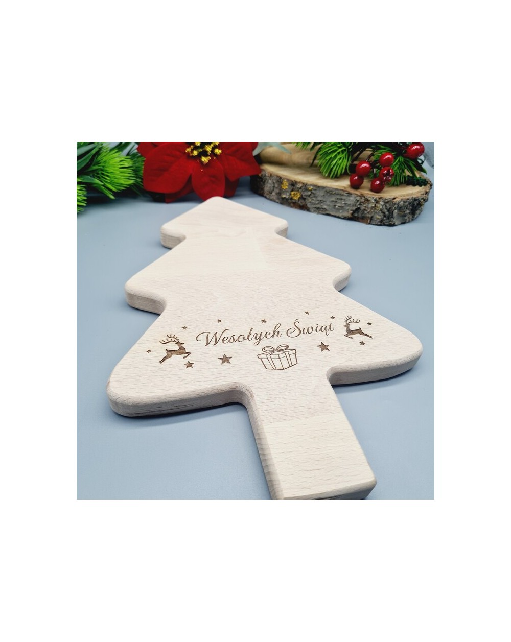 Solidna deska z klejonego drewna bukowego w kształcie choinki to świetna propozycja na upominek oraz ozdobę świątecznego stołu.