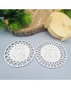 Podkładki pod kubki wykonane są z drewnianej sklejki, zabezpieczonej białą farbą, z okrągłym kształtem i ażurowymi wycięciami dedykowane dla babci i dziadka.
