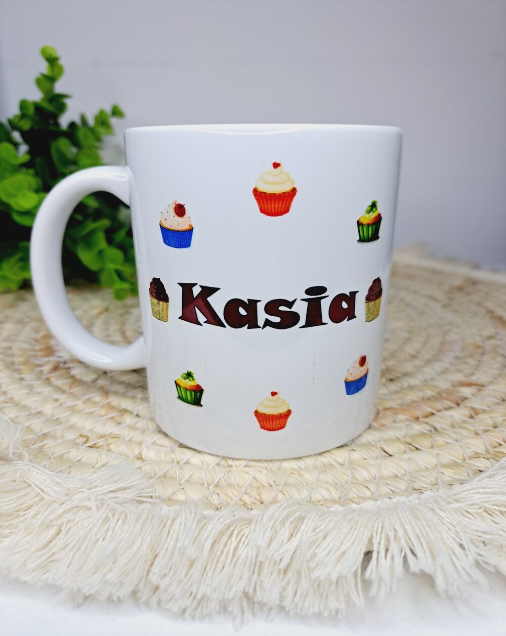 Kubek z grafiką babeczki i napisem "Super Babeczka" oraz imieniem, np. "Kasia", to humorystyczny i personalizowany upominek. Idealny na różne okazje, taki jak urodziny, imieniny czy Dzień Kobiet, z pewnością wywoła uśmiech i doda uroku każdemu porankowi.