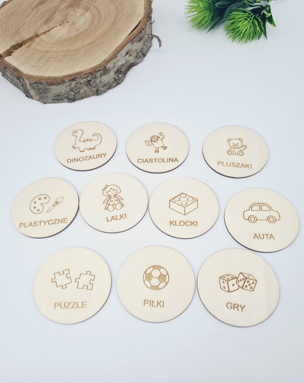 Nie zapomnij zapisać swojej personalizacji, aby móc dodać ją do koszykaPraktyczne i estetyczne drewniane etykiety na pudełka, które pomogą w organizacji przestrzeni. Każda plakietka ma średnicę 6,5 cm i jest wykonana z trwałego drewna, dzięki czemu prezentuje się elegancko i pasuje do różnych wnętrz. Na każdej etykiecie znajduje się czytelny napis oraz obrazek odpowiadający kategorii, co ułatwia identyfikację zawartości pojemników.