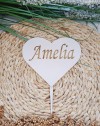 Ozdobne serce z imieniem, wykonane z białej płyty HDF, to elegancka dekoracja komunijna o wymiarach 13,5 cm, z nóżką do wbicia (9,5 cm) i subtelnym grawerem. Dzięki swojej estetyce i personalizacji doskonale komponuje się z wystrojem, stanowiąc piękną pamiątkę tego wyjątkowego dnia.