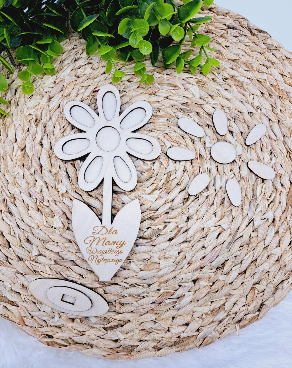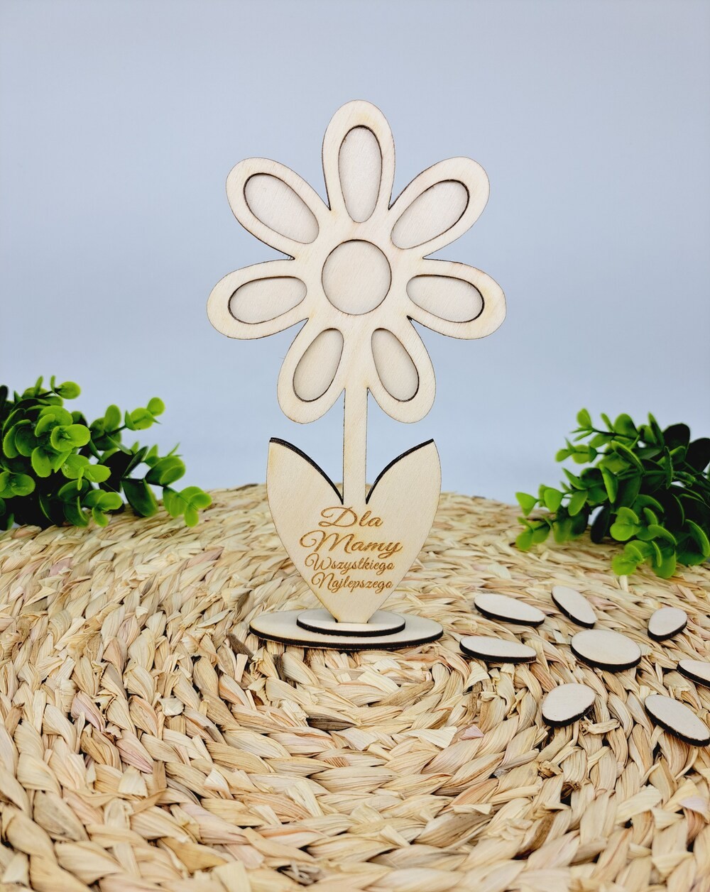 Nie zapomnij zapisać swojej personalizacji, aby móc dodać ją do koszykaDrewniana tabliczka w kształcie uroczego kwiatka to kreatywna baza do własnoręcznego wykonania prezentu.