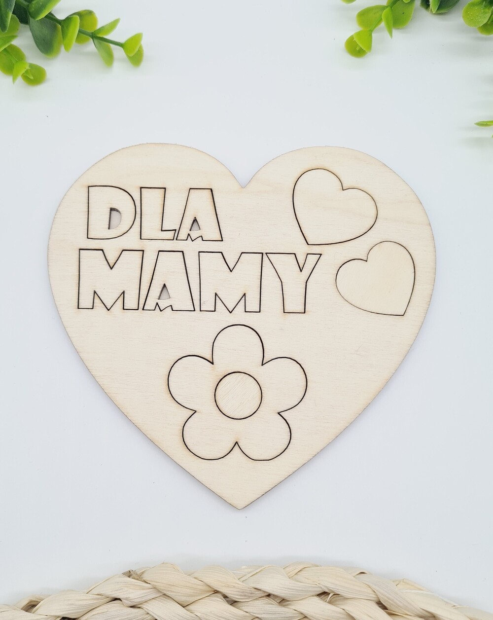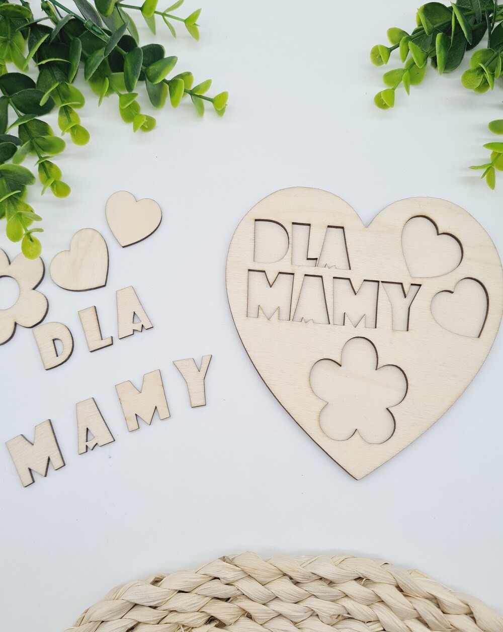 - Motywy sensoryczne: kwiatki, serduszka i napis "dla mamy" są wycięte, co umożliwia dziecku różnorodne techniki dekoracji.