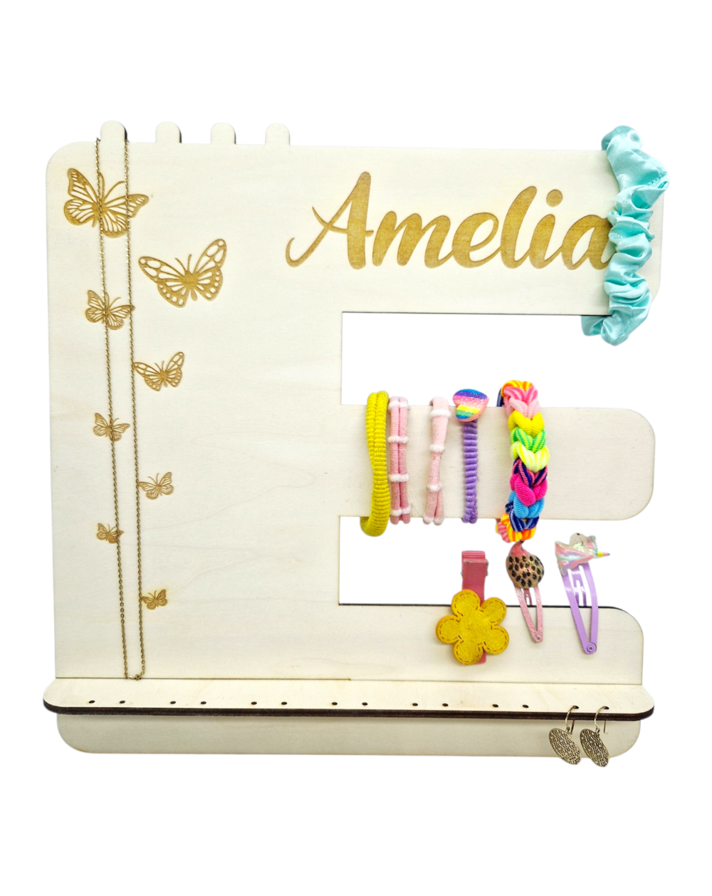 Nie zapomnij zapisać swojej personalizacji, aby móc dodać ją do koszykaPraktyczny i estetyczny stojak na biżuterię z drewnianej sklejki – idealny organizer do przechowywania gumek, spinek, kolczyków, bransoletek i łańcuszków w jednym miejscu. Minimalistyczny design sprawia, że pasuje do każdej toaletki lub półki, a liczne uchwyty i otwory ułatwiają uporządkowanie Twoich dodatków. Świetny wybór do domu lub jako prezent dla miłośniczek biżuterii. Produkt wykonany z naturalnych materiałów.