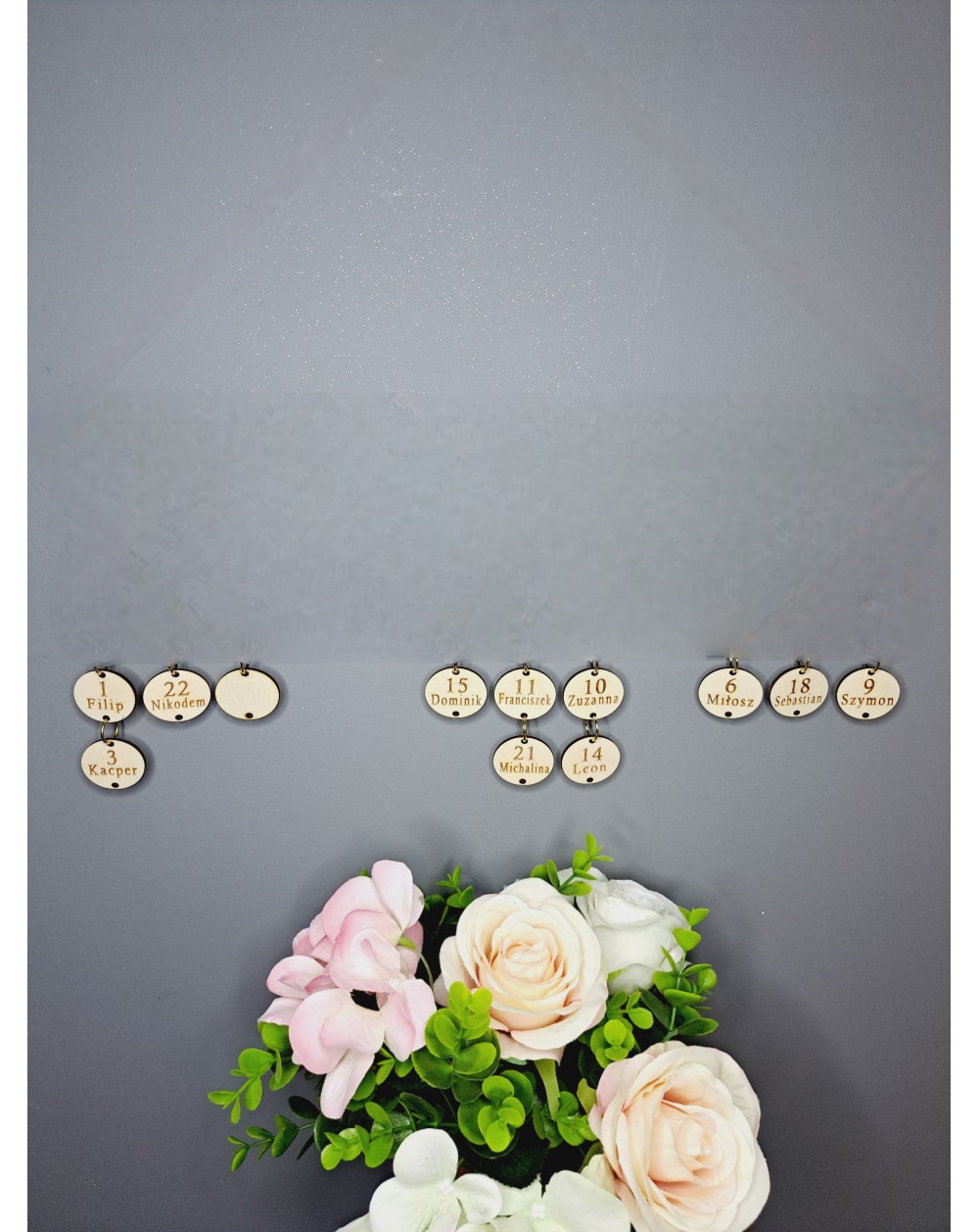 Nie zapomnij zapisać swojej personalizacji, aby móc dodać ją do koszykaDodaj osobisty akcent do swojego Kalendarza Urodzin dzięki naszym wyjątkowym kółeczkom z grawerem! Każde kółeczko wykonane jest z wysokiej jakości materiału i personalizowane grawerem imienia oraz dnia urodzin.