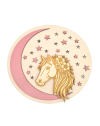 Lampka nocna dla dzieci w kształcie koła (25 cm) ze sklejki, z motywem konia, księżyca i gwiazdek, dotykowym włącznikiem oraz bezpiecznym zasilaniem na baterie (brak w zestawie) – idealna do przytulnego oświetlenia pokoju i jako wyjątkowy prezent. Księżyc i gwiazdki mogą być wykonane w sześciu różnych kolorach. Przy zamówieniu prosimy o dostosowanie produktu.