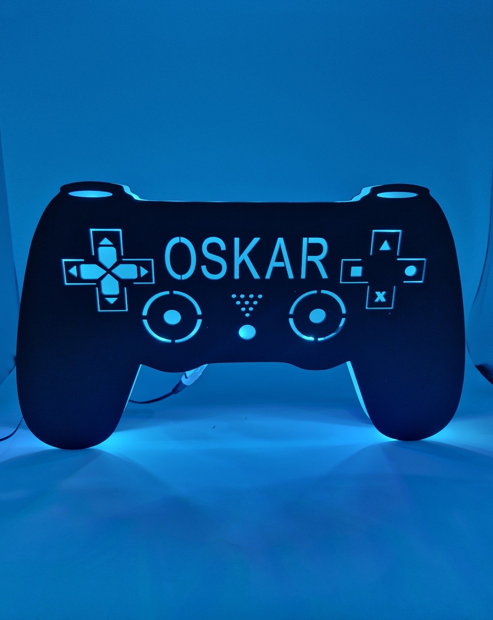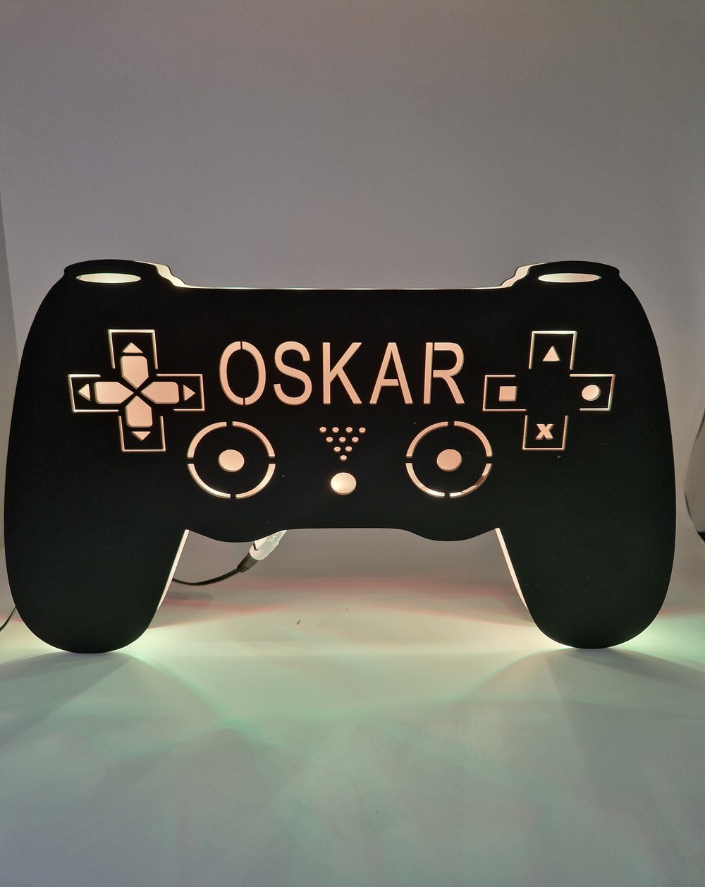 Personalizowana lampka LED w kształcie pada z imieniem, świecąca w 15 kolorach i wyposażona w pilot oraz nóżki do postawienia lub możliwość powieszenia, to idealna dekoracja i prezent dla gracza.