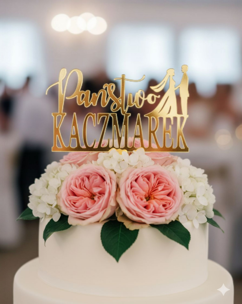 👉 Ten topper na tort weselny z imieniem i nazwiskiem to must-have na każdą uroczystość – efektowny, praktyczny i wyjątkowy.
