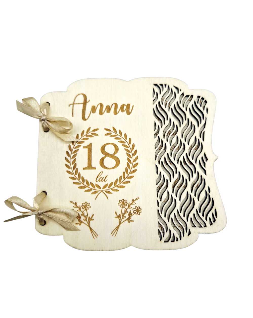 Nie zapomnij zapisać swojej personalizacji, aby móc dodać ją do koszykaWyjątkowa kartka okolicznościowa na urodziny to elegancki i niepowtarzalny dodatek do prezentu, który na długo pozostanie pamiątką dla solenizanta. Prezentowana na zdjęciu wersja została przygotowana na 18. urodziny, jednak kartka może być spersonalizowana na dowolny wiek, co czyni ją idealnym wyborem zarówno na osiemnastkę, jak i kolejne jubileusze.
