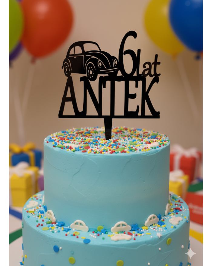 👉 Zamów już teraz personalizowany topper na tort z cyfrą, imieniem i autem i stwórz niezapomnianą dekorację urodzinową!