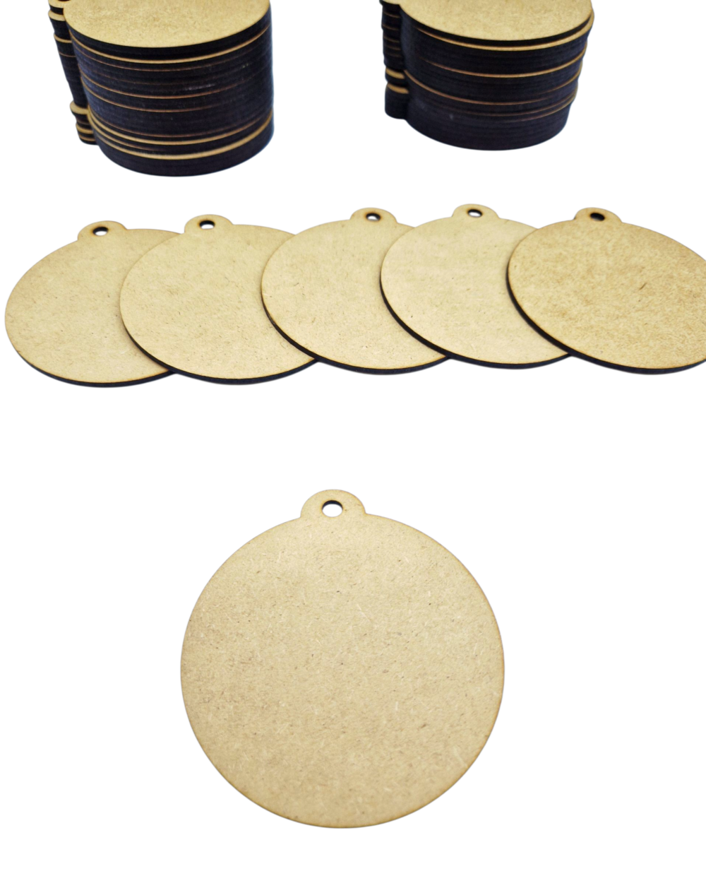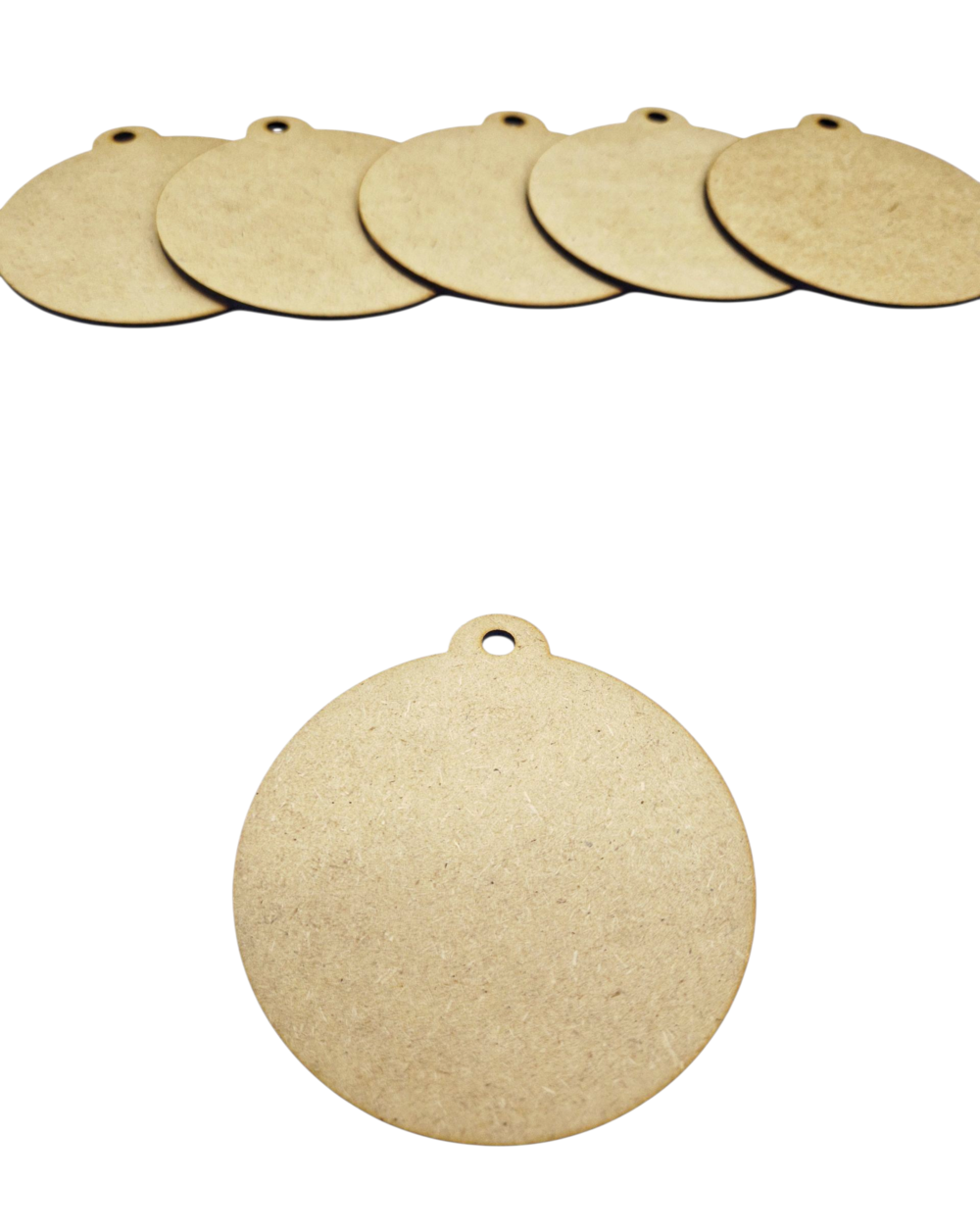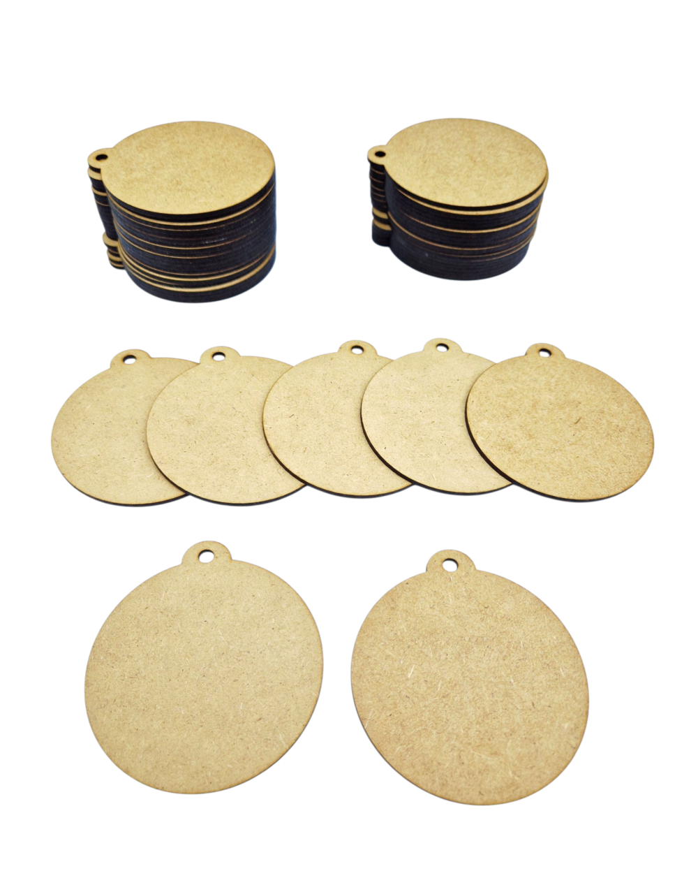 Baza do prac plastycznych w kształcie bombki, wykonana z płyty HDF. Wymiary ok. 10 × 9 cm. Bombka posiada dziurkę do zawieszenia – idealna do malowania, ozdabiania i tworzenia świątecznych dekoracji.