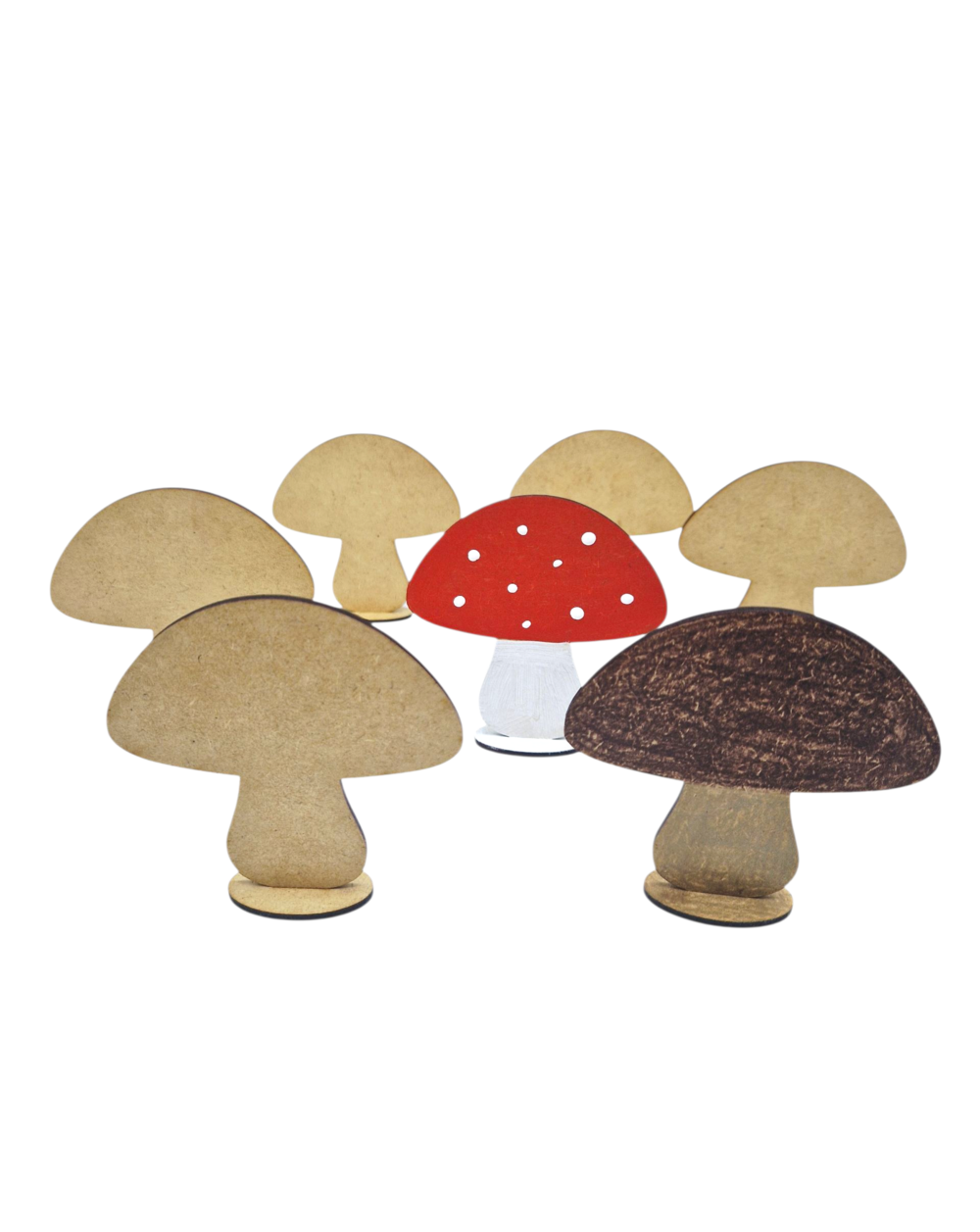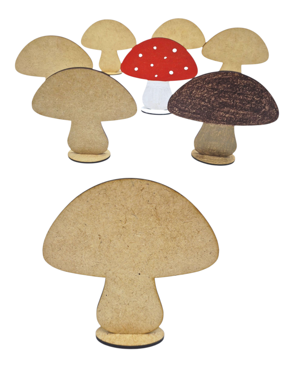 Baza do malowania w kształcie grzybka o wymiarach ok. 10x9 cm, wykonana z płyty HDF – idealna do malowania, kolorowania i wyklejania na warsztaty plastyczne, zajęcia szkolne i przedszkolne.