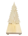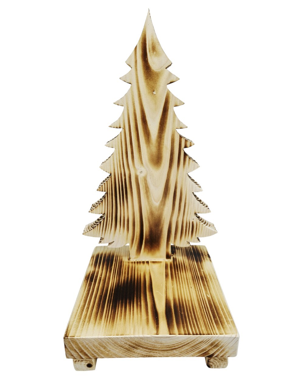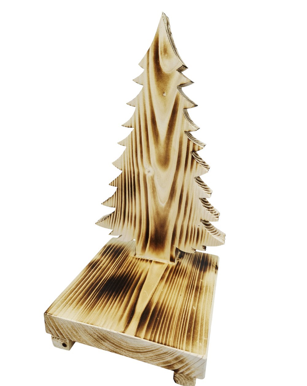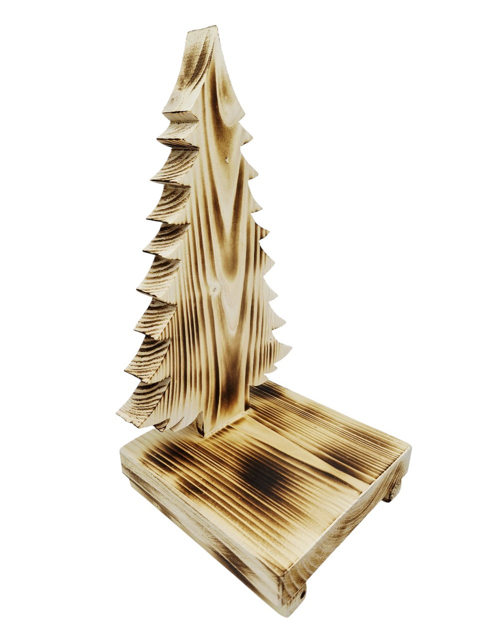 Drewniana choinka z podstawką – idealna baza do tworzenia kompozycji kwiatowych, stroików i dekoracji świątecznych. Naturalne lub opalone drewno, wymiary 31x16 cm. Doskonała do ozdób na grób lub do domu.