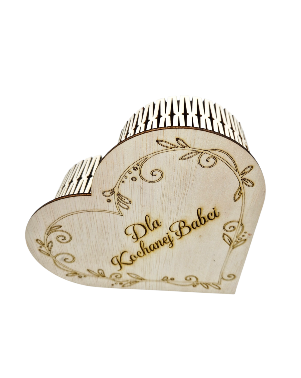 Nie zapomnij zapisać swojej personalizacji, aby móc dodać ją do koszykaStylowe i wyjątkowe drewniane pudełko w kształcie serca to doskonały pomysł na prezent pełen emocji. Wykonane z wysokiej jakości drewnianej sklejki, zachwyca naturalnym wyglądem oraz precyzyjnym grawerem, który nadaje mu niepowtarzalny charakter.