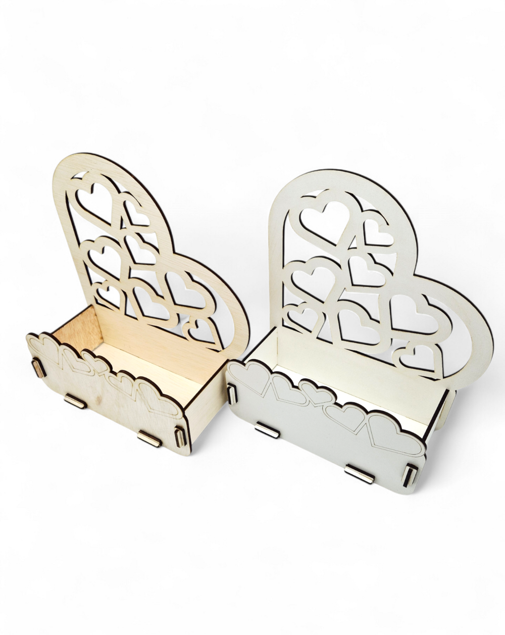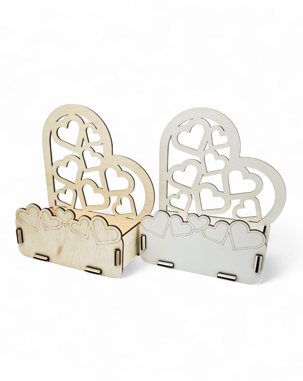 Dekoracyjne pudełko w kształcie serca to idealna baza do stroików, kompozycji kwiatowych i dekoracji okolicznościowych. Wykonane z białej płyty HDF lub naturalnej sklejki drewnianej. Stabilna konstrukcja, szybki montaż bez użycia kleju oraz elegancki ażurowy wzór serc sprawiają, że produkt doskonale sprawdzi się na śluby, walentynki i dekoracje domu.