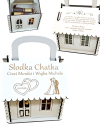 Słodka Chatka na ślub to eleganckie, personalizowane opakowanie na słodycze wykonane z płyty HDF. Idealny upominek dla Pary Młodej, z możliwością graweru oraz wymiarami 18 × 13 × 13 cm.