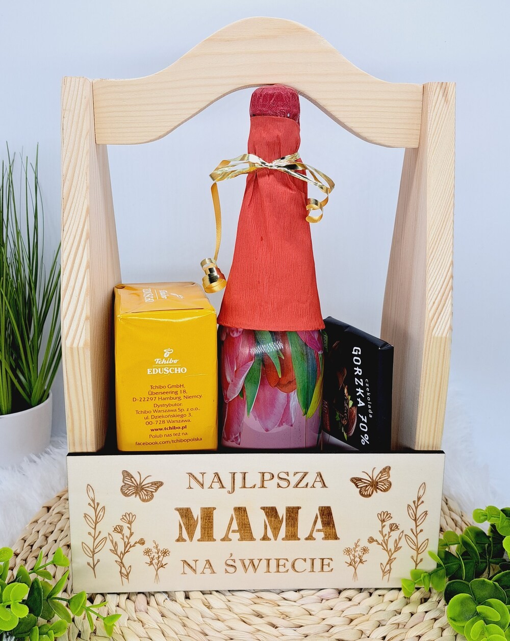Przedstawiamy naszą piękną skrzynkę wykonaną z drewna, która została stworzona z myślą o wszystkich mamach, które zasługują na coś specjalnego. Ta skrzynka to nie tylko praktyczny dodatek, ale również piękna dekoracja, która z pewnością wywoła uśmiech na twarzy każdej obdarowanej mamy. Skrzynka wyposażona została w solidną drewnianą rączkę, która ułatwia przenoszenie i dodaje jej rustykalnego uroku. Na froncie skrzynki znajduje się wyjątkowy grawer z napisem "Najlepsza MAMA na świecie", który podkreśla, jak bardzo ceni się mamę. Dodatkowo, skrzynka ozdobiona jest delikatnymi grafikami kwiatków i motylków, co nadaje jej subtelny i romantyczny charakter. Tę piękną skrzynkę można wypełnić zgodnie z gustem mamy - może to być kompozycja świeżych kwiatów, ulubione słodycze, kosmetyki, a nawet drobne upominki. Niezależnie od tego czym zostanie wzbogacona, skrzynka stanie się niepowtarzalnym prezentem, który każda mama będzie mogła wykorzystać na wiele sposobów - jako ozdobę wnętrza, pojemnik na biżuterię czy miejsce do przechowywania pamiątek. Ta drewniana skrzynka z piękną grafiką i grawerem to idealny wybór na każdą okazję, by powiedzieć "dziękuję" i pokazać, jak bardzo kocha się mamę. Wymiary 25 cmx15cm , wysokość 38cm. Skrzynka sprzedawana bez zawartości prezentowanej na fotografii.