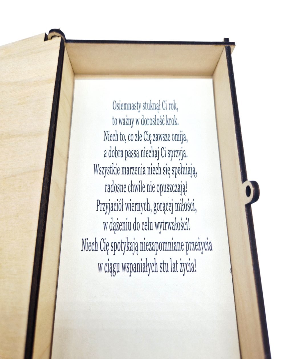 Wejście w dorosłość wymaga odpowiedniej oprawy. Zapomnij o nudnych kartkach z życzeniami – wybierz personalizowane pudełko wykonane z wysokiej jakości drewnianej sklejki. To stylowy gadżet, który zachwyca naturalnym wyglądem i precyzyjnym wykonaniem.