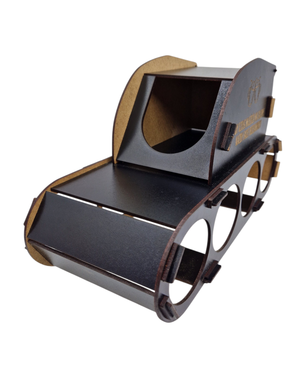 Oryginalny drewniany czołg na piwo wykonany z płyty HDF. Idealny pomysł na prezent – zabawny, solidny i efektowny. Sprzedawany bez zawartości, która służy wyłącznie do celów podglądowych.