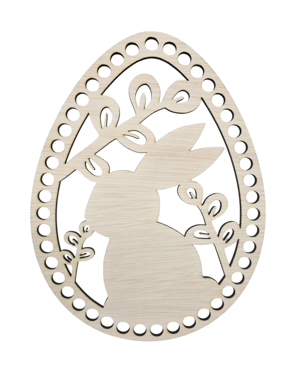 Baza do szydełkowania jajko z zajączkiem – drewniana sklejka, dekor wielkanocny DIY, baza do rękodzieła