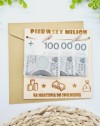 Tabliczka z wesołą grafiką z napisem "Pierwszy milion"