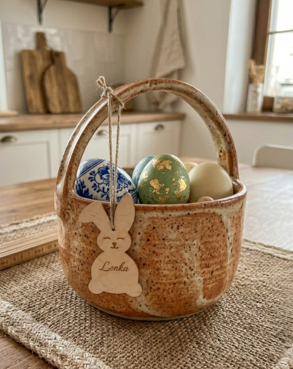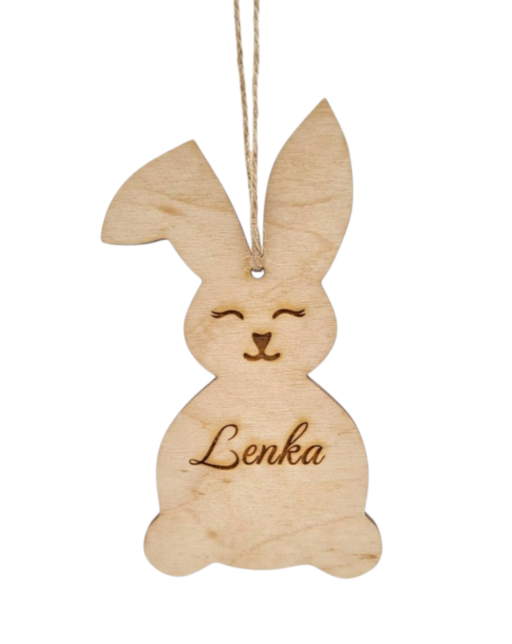 Drewniana zawieszka w kształcie uroczego zajączka to idealny sposób na podpisanie wielkanocnego koszyczka lub oryginalny bilecik do prezentu. Wykonana z naturalnego drewna, z precyzyjnym grawerem dowolnego imienia.